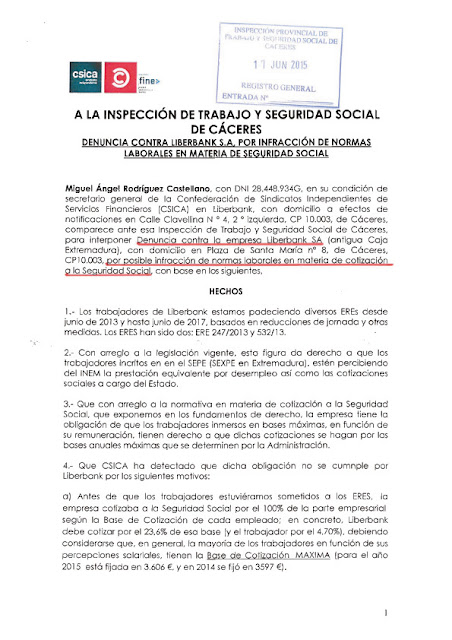 LIBERBANK: Esta situación mejora la existente en la antigua Caja